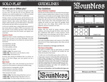 Boundless is a soulslike tabletop RPG with old-school grit and modern design. If you love Year Zero Engine, Cthulhu Dark, Fate, Into the Odd, Blades in the Dark, or Ironsworn, you’ll feel right at home. The entire game fits on a single page, including the character sheet. Quick to learn, deadly to play, and endlessly hackable.